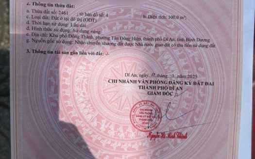 Nhà đất đang rao bán tại khu vực Dĩ An Bình Dương Chính chủ giá tốt.